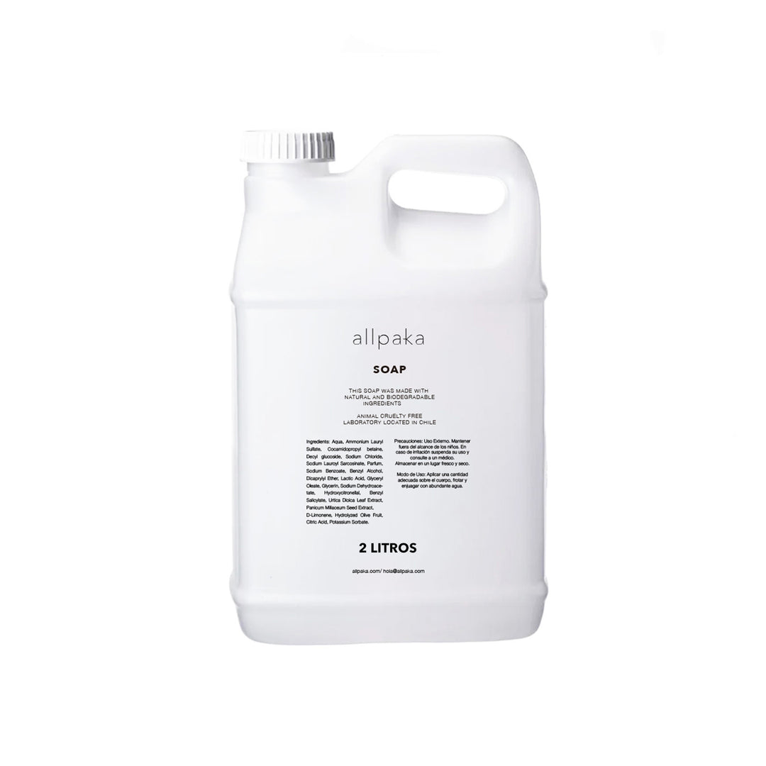 Con nuestra colección Refill puedes rellenar tus envases Allpaka y reducir el uso de plásticos desechables. Ofrecemos bidones de 2 y 5 litros de shampoo, acondicionador, jabón líquido y otros productos esenciales, todos fabricados en Chile con fórmulas naturales y orgánicas. Una solución práctica, económica y sustentable para hogares y hoteles que buscan minimizar su impacto ambiental.